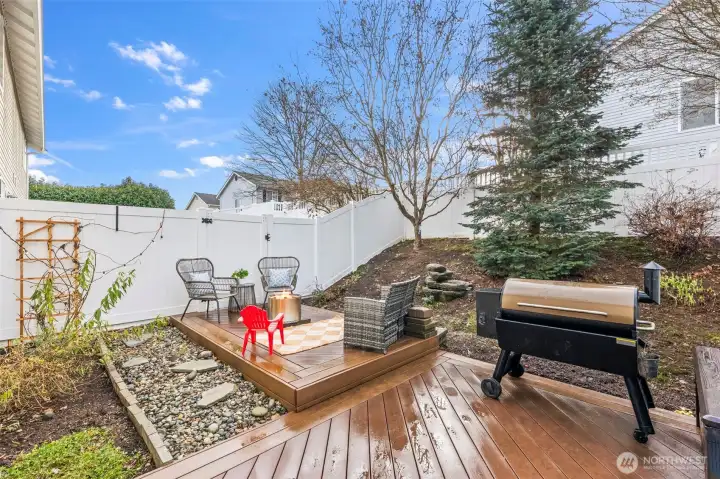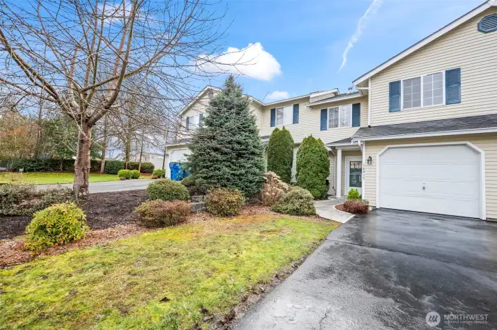 Pristine Model townhome on a quiet cul-de-sac offering a fully fenced back yard and entertainment deck. Shows like new and it has many fine designer accents. 3 bedrooms and 2.5 baths. Bright open floor plan layout with bright windows. Gleaming laminate wood flooring. Formal living room with gas fireplace. Modern kitchen overlooking the dining room nook with access to the tremendous backyard deck and fine landscaped backyard area. Primary bedroom suite with attached bath. Convenient attached garage with storage. The Arbor Ridge condominium community is highly desirable and conveniently located for easy commuter access to the east side and close to schools and shopping. Community sports court and it is close to parks and more.