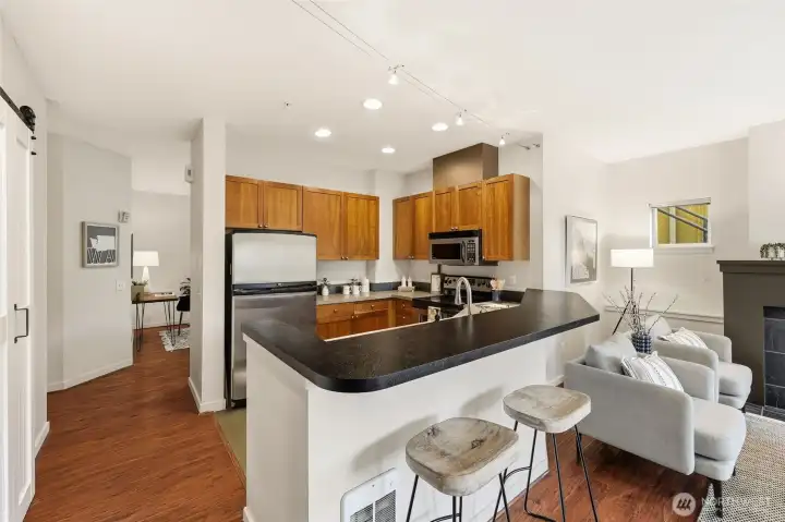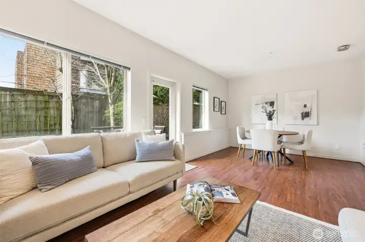 Rare one-level living in the heart of Fremont—an easy, approachable place to finally call home. This 2-bedroom, 2-bath residence welcomes you with a generous entry featuring space for a desk or drop zone, perfect for work-from-home days or everyday organization. The spacious kitchen overlooks the open living and dining areas and enjoys views of the large yard, creating a comfortable flow for daily life and casual entertaining. One parking space included. Just steps to Fremont’s beloved restaurants, local shops, and the Burke-Gilman Trail, offering effortless access to dining, errands, biking, and outdoor time. A rare opportunity for simple, well-located living in one of Seattle’s most vibrant neighborhoods.