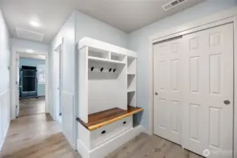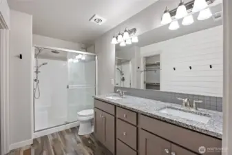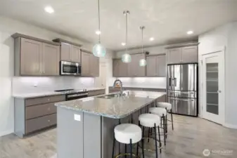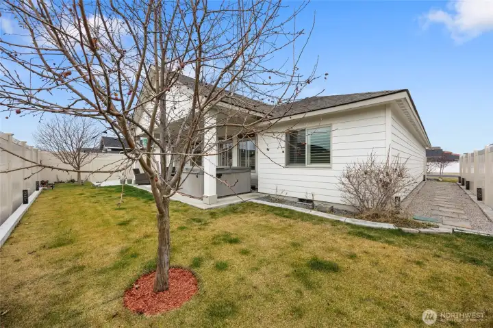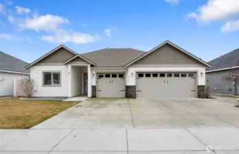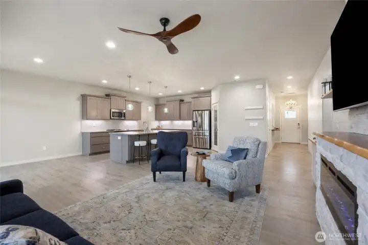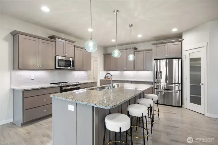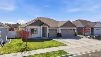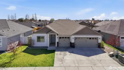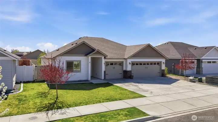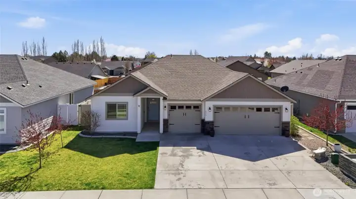 Discover this beautifully crafted Alderbrook custom home offering 1,782 sq. ft. of thoughtful design and quality upgraded custom built-ins and finishes. Enjoy 3 spacious bedrooms, 2 modern bathrooms, and an inviting great room with electric fireplace in the uniquely designed shiplap wall with custom shelves. There's laminate flooring throughout and the gourmet kitchen features stunning granite countertops, perfect for cooking and entertaining with a sit-up bar for 5 stools. The primary suite includes a convenient bathroom with a barndoor, added for comfort and privacy and located at the back of the house. The other bedrooms are separated, one at the front, close to the front door and the other at the back on the other side of the house by the laundry room. A fully insulated and sheet-rocked 3-car garage provides ample space for vehicles, storage, or hobbies. One bay is separated by a wall for storage or workshop but is also useable as a 3rd garage. Step out the back slider to a covered patio with a hot tub in the fully level landscaped yard with underground sprinklers, a 6' fence creating a private low-maintenance outdoor oasis. Even the side of the home is landscaped with pavers and solar lighting. This home is packed with upgrades and thoughtful touches, and there's so much more. Truly a must-see for anyone seeking comfort, style, and quality craftsmanship including the wood wrapped windows and shutters. Call now!