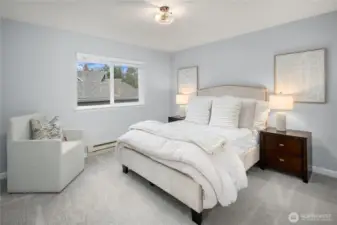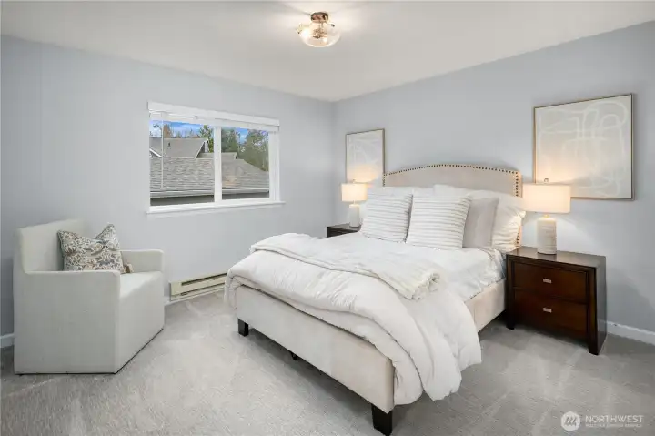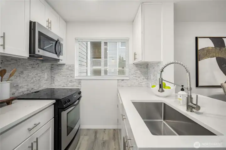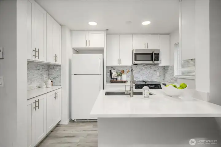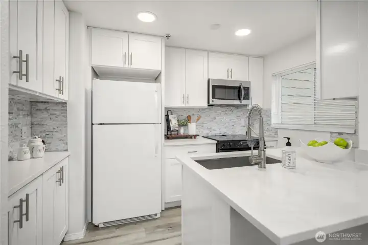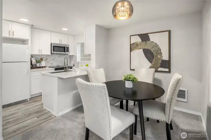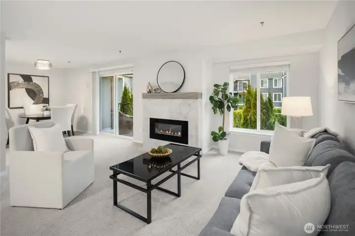 Updated 3-bedroom, 2-bath end-unit condo in Kirkland’s Juanita Country Club community, offering 1,138 square feet of well-designed living space. The home has been remodeled from top to bottom, including the kitchen and baths, creating a refreshed and inviting interior. The kitchen opens to the dining area, which then flows into the living room, offering a functional layout for everyday living and entertaining. Natural light fills the interior, and the private balcony provides an outdoor retreat overlooking the grassy lawn. The primary suite features an updated ensuite bath and a walk-in closet, while two additional bedrooms offer flexibility for guests, a home office, or additional living space. Centrally located near Totem Lake shopping and dining, I-405, and Redmond, all within a quiet, well-maintained community.