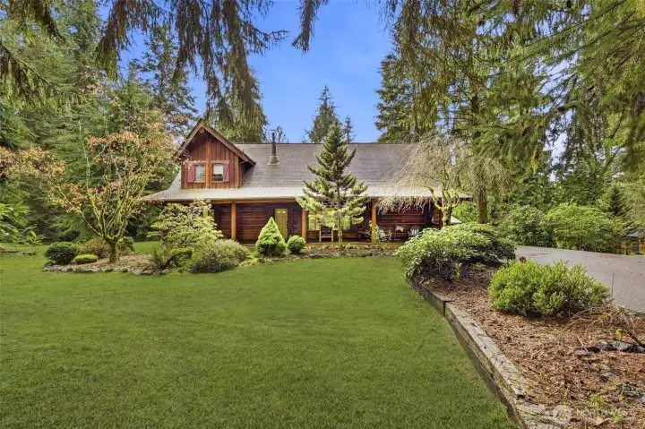 The Most Charming custom-built 3 BR 2 Bath Log Home you have ever seen built in 1988 on 2.5+ acres with over 400 feet of medium bank river frontage on the Pilchuck River. The Great Room features vaulted knotty pine ceilings, skylights, ceiling fans, oak hardwood floors, a wood stove, Energy efficient heating, and cooling system. Main floor primary bedroom with en-suite bath, beautiful log beamed ceilings. Two guest bedrooms with vaulted pine ceilings overlooking the Great Room, and a massive loft as well. This home also comes fully furnished with what you see in the home aside from a few personl items. Beautiful furnishings included with the home to name a few, are three beautiful log beds, bedroom, dining room, and living room sets, Outdoor furniture, and charm galore with outdoorsy decor. This is also an exciting opportunity for an Airbnb, VRBO or Retreat. The kitchen offers stainless steel appliances, a propane cooktop, and a breakfast bar that opens to the great room. The huge utility room equipped with a bank of custom-built cabinets. Outside, enjoy covered RV parking with electric hook ups, a detached shop or recreation room, a separate office with its own deck overlooking the river, along with covered parking attached to the shop with an EV charging station. You will love this home. Two spacious decks at the front and rear of the home. This is truly a ameticulously maintained “Country Log Home” .