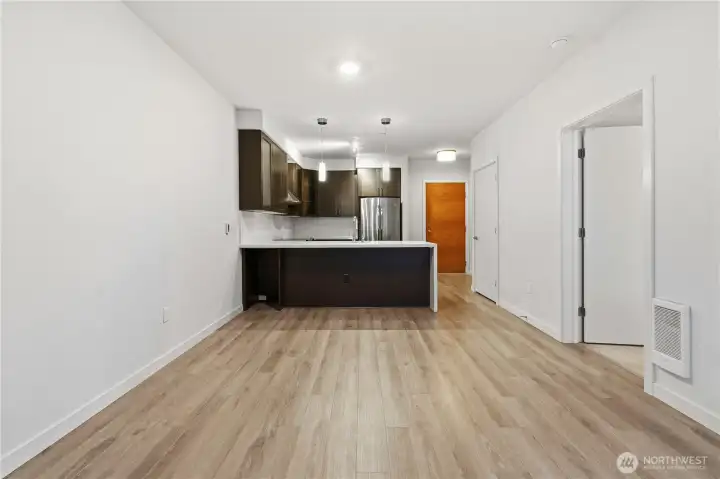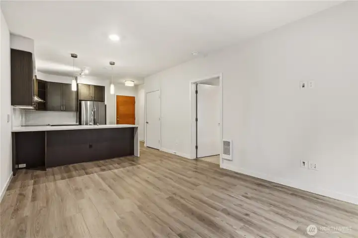 Stylish and spacious condo ideally located in the vibrant heart of Ballard. This north-facing unit features a private balcony and a thoughtfully designed open kitchen with stainless steel appliances, quartz countertops, and a generous eating bar—ideal for everyday living and entertaining. The layout includes a large walk-in closet and a modern bathroom with a tiled tub/shower. Building amenities support convenient urban living and include a panoramic rooftop deck with BBQ area, concierge-secured lobby, fitness center, dog run, and secure parking. Enjoy exceptional walkability to Ballard’s farmers market, restaurants, shops, library, cinema, and nightlife, along with easy access to express bus routes to Downtown Seattle and UW, plus connector service to major employment centers.