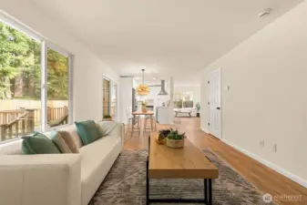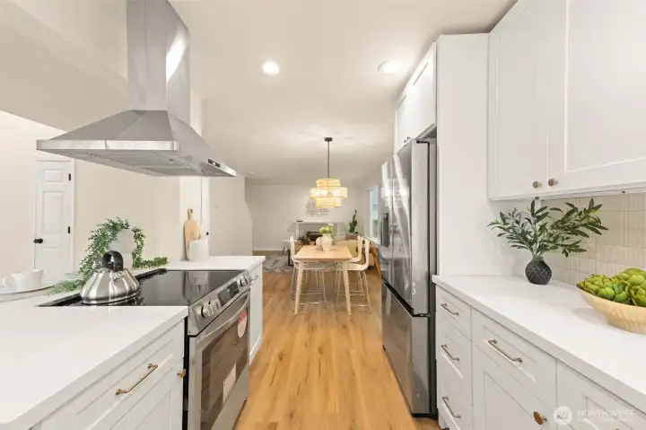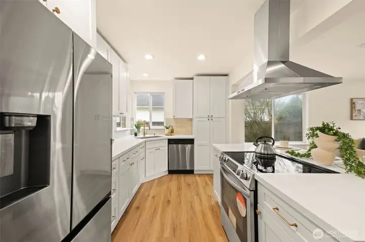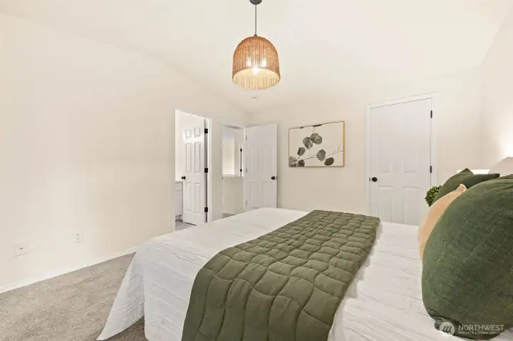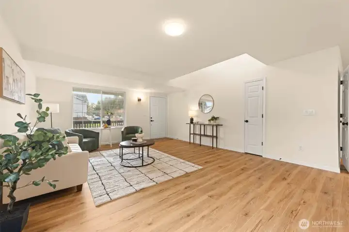 Remodeled with an emphasis on comfort, quality, and modern livability, this Puyallup home is truly move-in ready. Fresh interior and exterior paint set a clean, cohesive tone, while new life-proof luxury vinyl plank flooring and new carpet carry through the entire home. Updated light fixtures add warmth and a contemporary finish throughout each space. The open-concept kitchen is both functional and inviting, featuring a built-in pantry and easy flow into the main living areas- ideal for everyday living and effortless entertaining. Upstairs, the primary suite feels like a private retreat, highlighted by vaulted ceilings, a newly remodeled bathroom, and a walk-in closet that completes the space with a sense of quiet luxury. Out back, enjoy a private setting with a deck designed for year-round use, summer evenings, and relaxed gatherings. An attached two-car garage and the extensive list of recent upgrades make this home stand out as a thoughtful, well-executed remodel in a desirable Puyallup location. A home where the work has been done and the details thoughtfully considered—ready for its next owner.