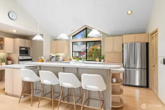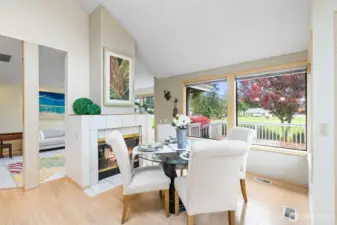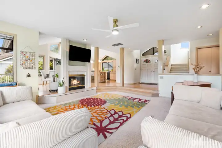 Elegant 3-bedroom, 2-bath home in Sequim’s desirable Sunland community. Set along the golf course, this 2,105 sq ft residence showcases refined living with a double-sided fireplace, gleaming hardwood floors, and a gourmet kitchen featuring a large island, walk-in pantry, and abundant workspace. The main floor offers a guest bedroom, full bath, and laundry, while the upper level hosts a serene primary suite and guest room. Enjoy a spacious deck with sweeping golf course views, pristine landscaping, and a 2-car garage with golf cart bay. Sunland amenities include a pool, clubhouse, tennis courts, and private beach access.