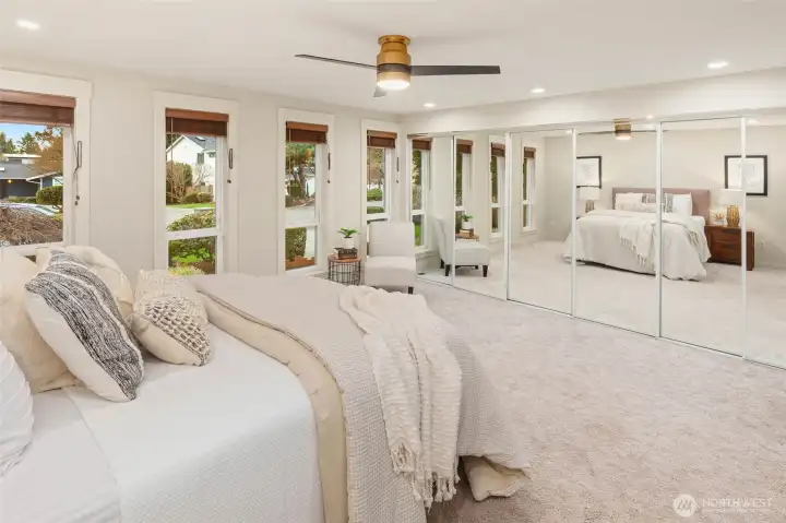 Quintessential rambler on a lush, shy 1/2 acre, level lot in coveted Newport Shores—perfectly designed for multi-generational living or an ideal mother-in-law setup. Tucked behind mature landscaping, the private backyard retreat offers a serene garden oasis and patio with hot tub —creating a peaceful, level outdoor haven for gatherings of all ages. Enough parking for up to 6 vehicles! Inside, casual elegance meets everyday comfort with an open-concept layout that seamlessly connects living spaces while still offering privacy where it matters most. Two spacious primary suites provide flexible living options—ideal for extended household living, long-term guests, or a private MIL retreat. A versatile den adds even more functionality, whether for a home office, media room, or additional flex space. Enjoy resort-style, year-round neighborhood amenities including a community pool, tennis and pickleball courts, volleyball, and a clubhouse overlooking the marina—offering recreation and connection in every season. Located in one of Bellevue’s most unique waterfront communities, this home boasts a phenomenal location with quick access to I-90, I-405, and all major Eastside hubs including downtown Bellevue, Seattle, and Sea-Tac. Served by the highly regarded Bellevue School District, including Newport High School. A rare blend of flexible living, vibrant community amenities, and unbeatable connectivity—all in a truly special neighborhood.