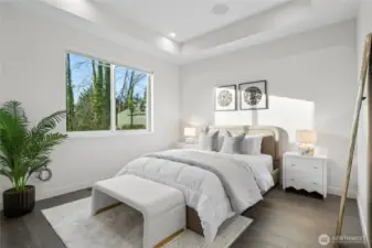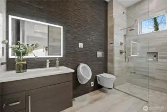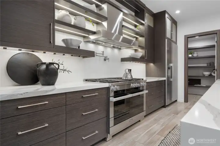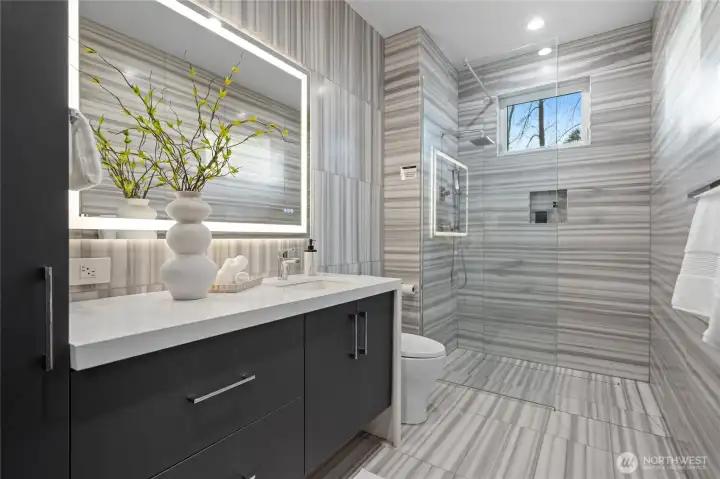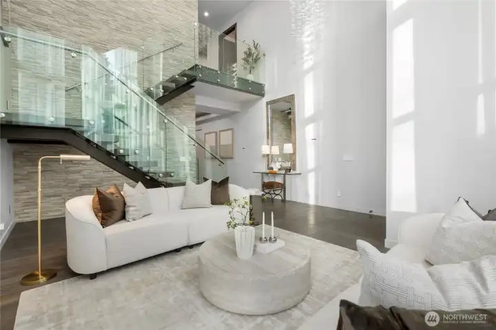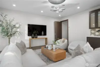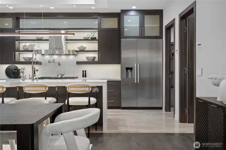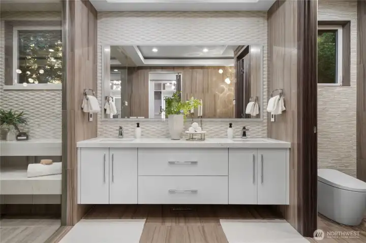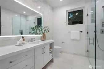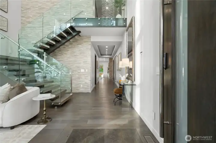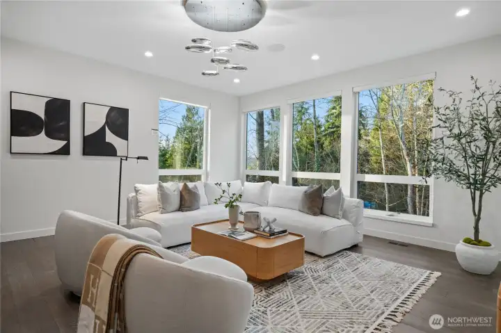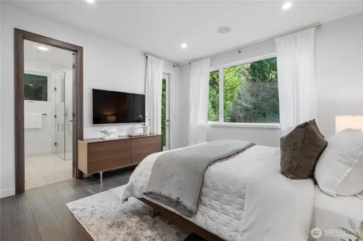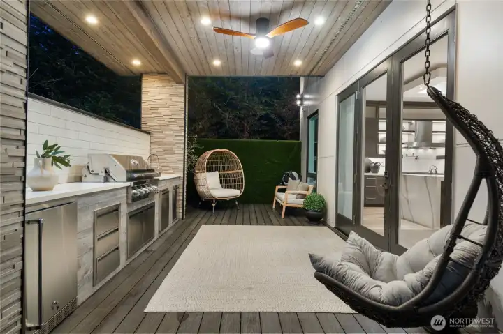 Built as the builder’s own home, this custom Newcastle residence offers just over 4,100 square feet of thoughtfully designed living space that feels intentional, comfortable, and refined. The floor plan includes four private bedroom suites, each with its own bathroom and walk-in closet, along with a fifth powder room and a spacious bonus room featuring a wet bar and views toward Lake Washington. A tall, double-height entry creates a strong first impression, while 10-foot ceilings on the main level and 9-foot ceilings upstairs keep the home open without feeling oversized. Materials were selected for quality and longevity, including no texture walls, wide-plank hardwood floors, natural stone, Italian solid-core doors, and custom millwork throughout. The kitchen is designed to be lived in, with handcrafted cabinetry, stone countertops, Miele appliances, and heated floors. Large windows and glass doors bring in natural light and open to two covered outdoor living spaces, including an outdoor kitchen and a fire pit seating area suited for year-round use. The home was built with premium framing, added concrete, spray-foam insulation, triple-pane windows, and sound-reducing interior walls. Fully fenced property features modern horizontal fencing, low-maintenance pet friendly turf all just minutes from parks, shopping, Gene Coulon and Newcastle Beach.