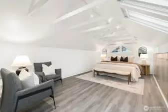Perfectly positioned atop Queen Anne, this beautifully re-imagined 1908 Craftsman blends timeless charm with modern living. The light-filled main level features high ceilings, an updated kitchen, bedroom,& a versatile flex space ideal for working from home.The primary loft suite offers a cozy yet spacious retreat w/a ¾ bath & ample storage. The lower level provides two additional bedrooms, bathroom, & a comfortable family room—ideal for guests or everyday living.Modern amenities and upgrades include A/C, tank less water heater, and a new roof. Enjoy a fully fenced, private landscaped garden w/Koi pond & a rare detached one-car garage. Prime location just minutes to Queen Anne Ave N shopping & downtown. Truly Queen Anne living at its finest!