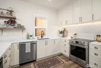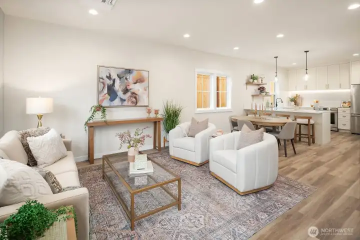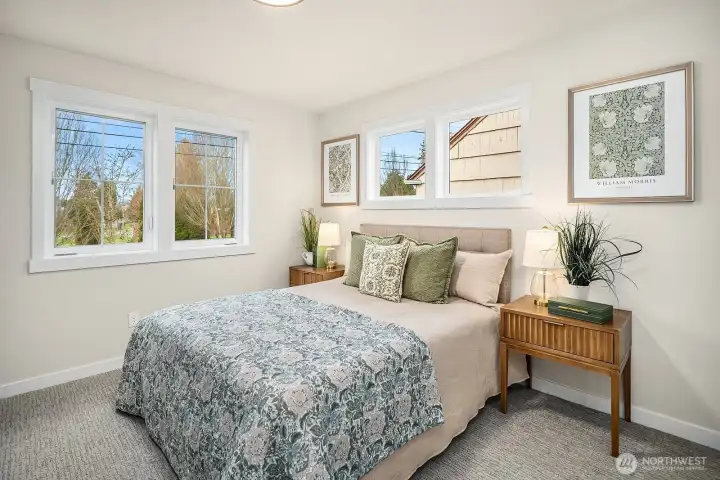Craftsman meets contemporary in this timeless newly built home by well-known and reputable builder, Collz Inc. From your fenced front yard, enter directly to the main floor and take in an expansive great room with windows wrapped in beautiful millwork. The well-appointed kitchen is highlighted with shaker style full-height upper cabinets and soft-close drawers and doors. Off the kitchen, enjoy a mudroom near the back door with built-in cabinets - the perfect place to drop shoes and coats when heading in from the off-street parking off alley. Head upstairs to the two spacious secondary bedrooms, full bathroom and laundry room. Your primary suite awaits you on the top floor featuring a fabulous walk-in closet, private balcony with western views and a large primary bath with stunning herringbone tilework along with a bench in the over-sized shower. Sun-drenched private office completes this level. Ideally located in Northeast Seattle's Bryant neighborhood, enjoy close access to University Village, Seattle Children's Hospital, University of Washington, and the Burke Gilman Trail.
