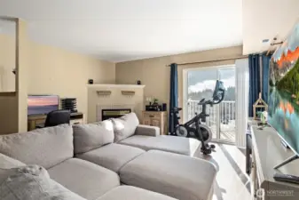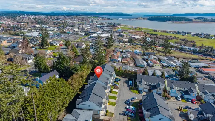 Perfectly situated end unit, town-house style condo in Oak Harbor. This south facing condo has abundant natural light, views of the water and mountains and a second story balcony from which to enjoy it all! 2 Bedrooms and 2.5 bathrooms with LVP floors and updated lighting. The kitchen has a door to back deck, a gas cooktop and wood kitchen cabinets. The living room opens to the balcony and has a gas fireplace for warm, cozy evenings. Off the back porch is a grassy common area for a place to play and a natural feel. The garage is large and fits two cars. HOA covers water, sewer, garbage and landscaping. Great location near town, NASWI, shopping, City Beach Park and much more. Come and make it yours!