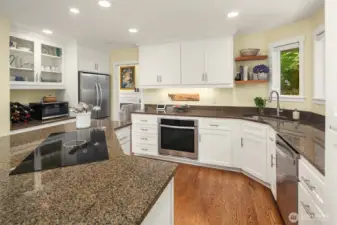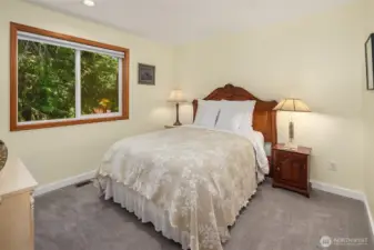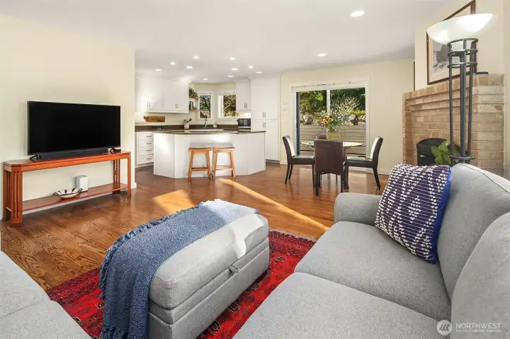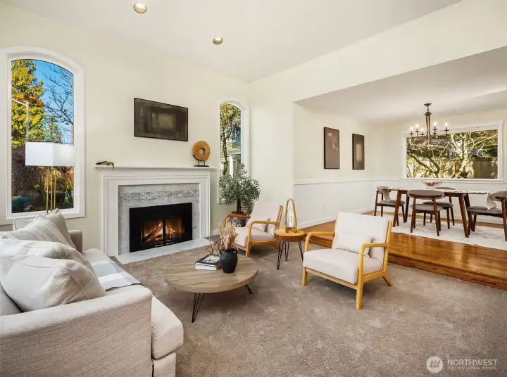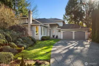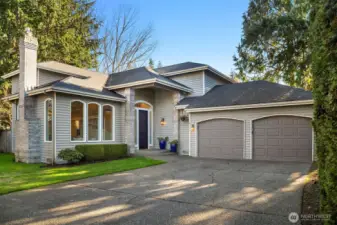 Tucked away at the end of a charming cul-de-sac, this 4-bedroom home welcomes you with a grand two-story entry. The vaulted great room features an array of arched windows that flood the space with natural light and style. The kitchen is designed for entertaining, with a center island hosting a built-in range and counter seating, updated cabinetry, and an open layout to the family room. The main-floor bedroom is conveniently located across the hall from the updated ¾ bathroom, making it an ideal home office or a comfortable bedroom option for those seeking stair-free living. Step outside the back door onto a peaceful back deck, an inviting retreat for quiet mornings or lively gatherings. The primary suite is a true escape, featuring a skylight, generous closet space, and a well-appointed five-piece bath. The expansive two-car garage includes a workshop area and a pull-down ladder for abundant overhead storage. Outside is a detached shed, cozy gas fireplace and a covered gazebo- already wired for a hot tub!
