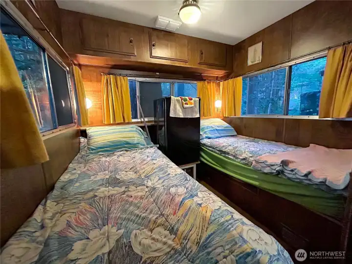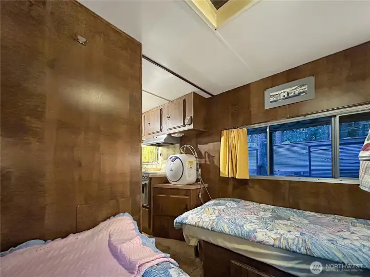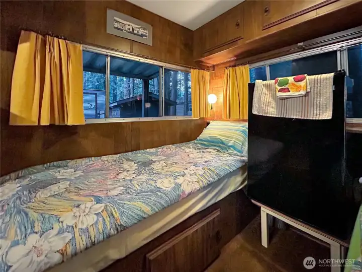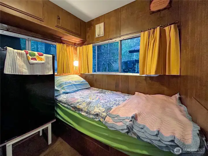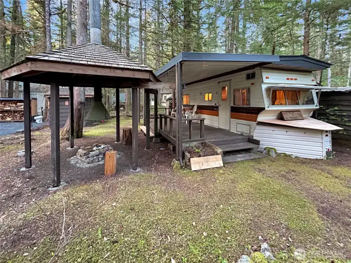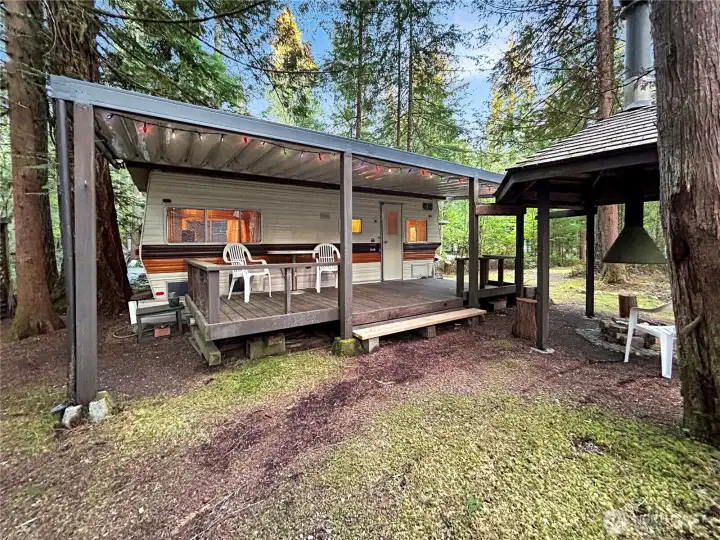 Get started at the Glen with this cute trailer full of potential! Located in Div 3 and set back from the road, it has a covered deck, cool covered fire pit area and a shed. Inside, the dining table converts into sleeping space with a fold-down bed above, plus two more beds in the back room! Full bathroom, too. When you're ready, upgrade the trailer and create your own dream getaway! Community amenities include Nooksack River access, parks, trails, pools, playgrounds, disc golf & year-round events. Gated access w/ 24/7 security. Comes fully furnished & is located just 30 minutes from Bellingham & 15 minutes from the base of Mt. Baker & Silver Lake. Limited to 120 days/year occupancy. No rentals.