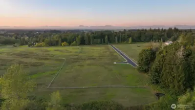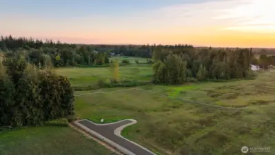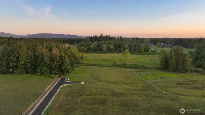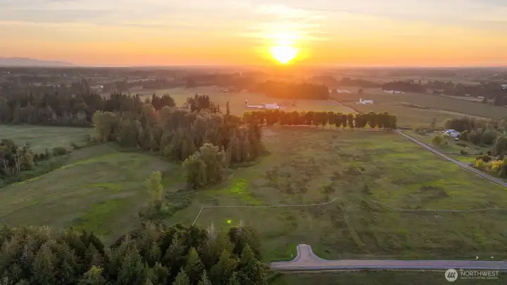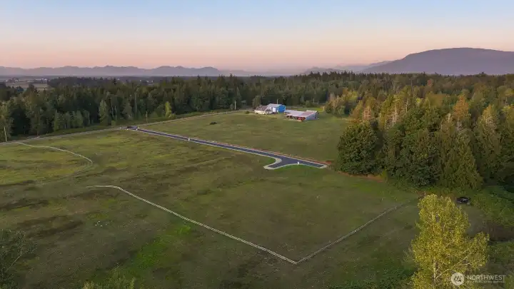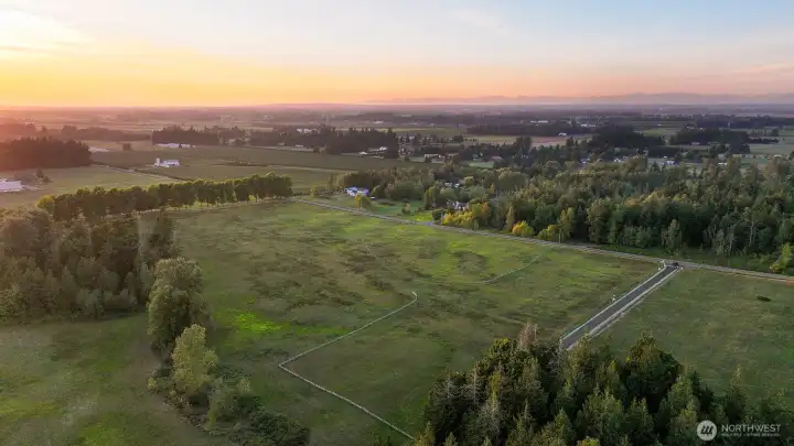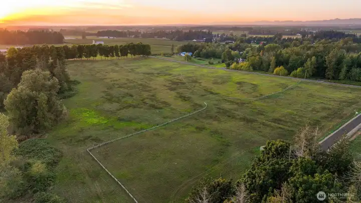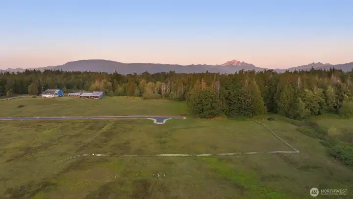 Take advantage of this rare, expedited development opportunity on a level 2.2-acre lot. Most preliminary work is complete, with an approved 6-bedroom or less septic design complete. Additionally, the property features power, road access, and a shared well installed. As the last home on a road, enjoy privacy, western sunset views, a seasonal creek, and expansive territorial vistas. Explore endless possibilities with initial conceptual plans for a 3,737 sq. ft. home with 5 bedrooms, 3 bathrooms, and a den, plus a detached 1,561 sq. ft. garage and a 924 sq. ft. studio, or cast your own vision and design your dream home. Enjoy a storybook setting while staying conveniently close, within a ten-minute drive to either Bellingham or Lynden.