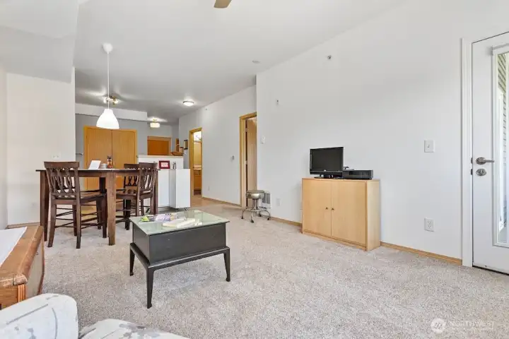 Well maintained light and bright 1-bed unit with 9 ft ceilings. Features an office/den, updated fixtures, washer & dryer in a large utilty room with lots of storage. Open layout with a private balcony ideal for morning coffee or evening relaxation. Living room shade controlling light and privacy, ceiling fan. Extra dressing space & vanity off bedroom w/walk-in closet opens to a full bath. Clubhouse w/kitchen, lounge, fireplace, and fitness center. 24 hour security. Close to Cordata park & trails, bus, WCC, shopping & restaurants. Perfect as a primary residence or income property with no rental cap! ASSUMABLE VA LOAN @ 2.875%