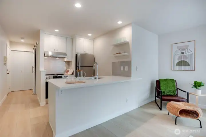 Remarkable opportunity to enjoy iconic Queen Anne city living. This fully remodeled condo offers a smart, efficient layout ideal for full-time in-city living or a darling pied-à-terre. Light-filled living and dining spaces open from the kitchen, framing sweeping urban views of Downtown Seattle, Lake Union, and a peek-a-boo view of the Space Needle. Recent updates have been thoughtfully completed to get you started, including new flooring, refreshed cabinetry, an updated continental bath, and a brand-new washer and dryer—move right in and enjoy. The bedroom features private access to the bath, creating a comfortable and intuitive floor plan that lives larger than expected. The real showstopper is the rooftop deck, where 360° views set the stage for sunsets, city lights, and Fourth of July fireworks. Additional highlights include assigned covered parking in a secure garage, dedicated storage, pet-friendly policies, and no rental cap, offering excellent flexibility for future use or investment. Blocks from Queen Anne’s beloved restaurants, shops, and transit, this home delivers the best of urban convenience with iconic Seattle views. Must see.