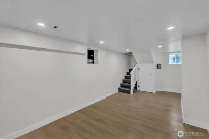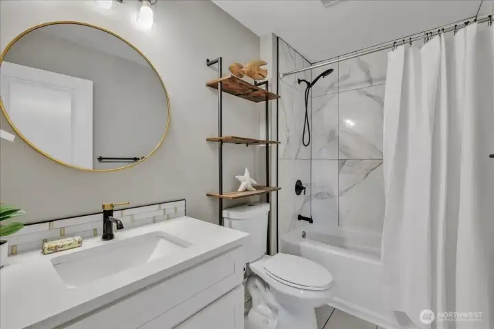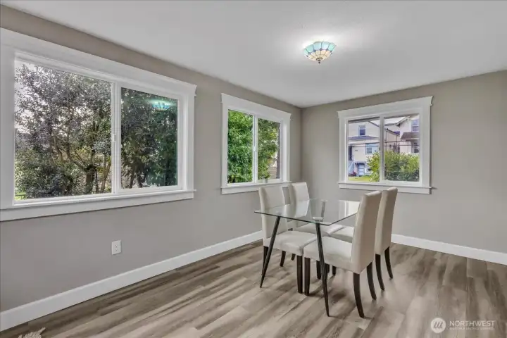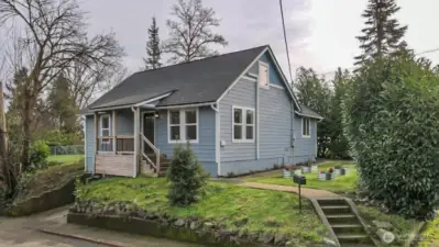 Beautifully remodeled corner-lot home filled w/natural light & privacy. Extensive upgrades include modern kitchen, heat pump, new roof, siding, electrical, plumbing, windows, doors & water line. Dining room opens to large fully fenced backyard, perfect for entertaining. Extra-large living room w/fireplace. Newly finished basement offers versatile bonus space ideal for rec, music, office, or gym, plus great storage. Steps to Evergreen Rotary Park, farmers market, shops & ferry terminal!