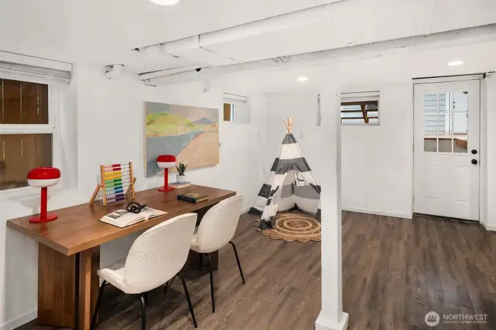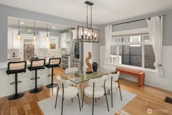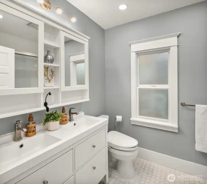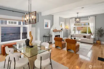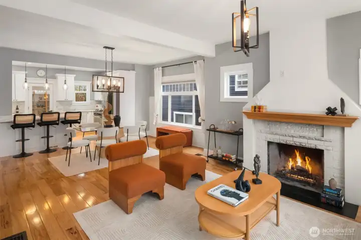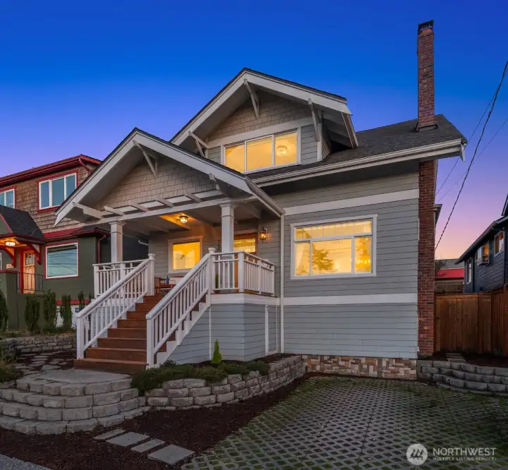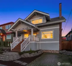 With its inviting west-facing covered front porch, this almost 3,000 square foot Ballard Craftsman beckons you to linger - an ideal perch for quiet mornings, golden evenings, and everything in between. Inside you’ll delight in its classic charm blended with thoughtful modern updates. Original character shines throughout, from rare 9’ main-floor ceilings and fully wrapped oversized windows to original baseboards, solid-core doors, and a beautiful wood-burning fireplace. The west-facing orientation fills each space with natural light, creating a bright, welcoming feel even on gray days. The main floor features a proper formal entrance, comfortable living & dining areas, a breakfast nook, an office/den & full bath, all anchored by the heart of the home: an open chef’s kitchen with abundant prep space, generous island, walk-in pantry, Bertazzoni range w/ pot filler, custom cabinetry, marble countertops & a farmhouse sink. Upstairs you’ll find four bedrooms & a full bath. The finished basement can double as a MIL/guest suite with a separate entrance, a bed & ¾ bath, a spacious living area and second washer/dryer hookup. Outside, the fully fenced backyard is designed for easy enjoyment year-round w/ pet-friendly turf, a deck with direct access from the kitchen for outdoor hangs & a large detached outbuilding ready for your home gym, studio, or hobby space. Just minutes from Ballard’s most loved destinations including the Sunday Farmers Market, Golden Gardens, and the Ballard Locks.