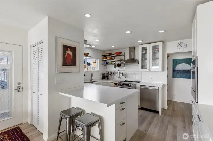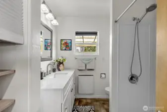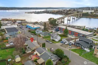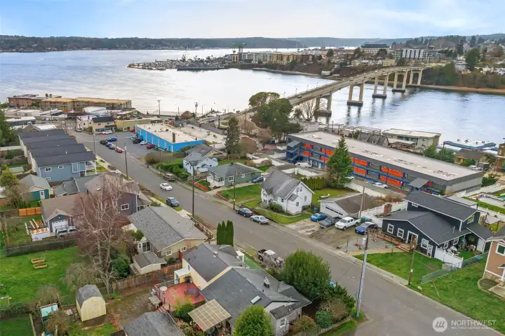 Manette Gem: Water View – Walk to Ferry Located in the heart of the popular Manette District, this move-in-ready, updated charmer offers impressive waterfront views and a short walk to downtown Bremerton, shipyard, and car/commuter fast ferry to Seattle. Thoughtfully designed and maintained, this 910 sq. ft. home features 2 bedrooms, 1.5 baths, a detached 10 x 12 sq. ft. studio perfect for those who work remotely, need a home office, or want a dedicated space to enjoy hobbies. The house features waterproof commercial vinyl flooring, an entertainers kitchen with big counters, modern cabinetry, built-in storage, pantry, and newer stainless-steel appliances. Stay warm with quiet, dust free, energy-efficient Envi wall heaters, dual split with AC that complement the home’s thoughtful layout. The covered, partially enclosed back sun deck located outside the main bedroom offers privacy and the ultimate PNW lifestyle with your own Hot Springs hot tub. Outdoor spaces and decks offer plenty of options for relaxing, day and evening entertaining. Additional highlights include a clean, usable crawl space, pet friendly yard, garden storage, fruit trees, raised flower, vegetable, and herb gardens. The Manette District is walkable, bike and stroller friendly and features year-round community events as well as restaurants, shops, yoga studios, waterfront parks, biking, kayaking, and other outdoor recreation This little gem of a house offers Manette living at its best.