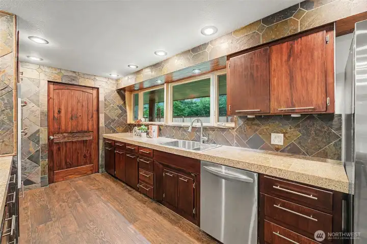 Tucked beside the serene shores of Gravelly Lake, this spacious rambler offers comfort, privacy, and easy one-level living. The home features expansive living areas ideal for both everyday living and entertaining, along with a generously sized primary bedroom that feels like a true retreat. Stay comfortable year with air-conditioning and central heat. The kitchen is well-appointed with tile countertops, a double oven, and abundant recessed lighting, flowing seamlessly into the dining area where back doors open to a fully fenced backyard. Perfect for indoor-outdoor living. The large yard provides ample space to relax or play and includes a convenient storage shed, park your RV, and enjoy outstanding territorial views, while remaining close to local amenities, shopping, and commuting routes. A rare opportunity to own a spacious rambler in a sought-after Lakewood location.