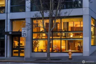 Executive-level property with a prime Belltown address. A complete renovation in 2020 produced this peerless residence with commercial flexibility. Two levels can be either a combined home or use the lower level as incredible entertaining space and the upper level as a luxury apartment. Rich woodwork throughout conveys a sense of quality and stability. Handsome fixtures grace every room, and custom lighting will impress as the interiors glow with one touch. A residential kitchen on the upper level features an induction range, ample storage, and an easy flow into the dining and living areas. Hidden surround sound throughout will flood the space with music, whether it's a quiet jazz or a spirited party. The main floor features two-story ceilings, a great room effect, discreet powder room, and commercial kitchen perfect for catering and hosting events. Sophisticated HVAC systems keep the interiors comfortable at all times, and custom motorized blinds can provide total privacy or be opened to unveil views of Elliott Bay. No other home in the Seattle core delivers the flexibility, luxury and utility offered in this distinct residence. The award-winning Banner Building, designed by Weinstein A+U, continues to inspire and thrill anyone who visits. Perfectly located for easy access to dining, shopping, Pike Place Market, waterfront and the world-class music and arts venues nearby. Large parking in secure garage. Explore the possibilities in this signature home today!