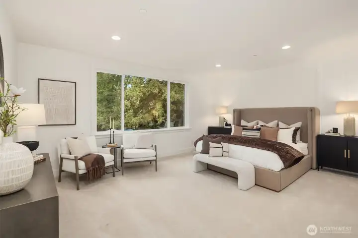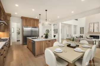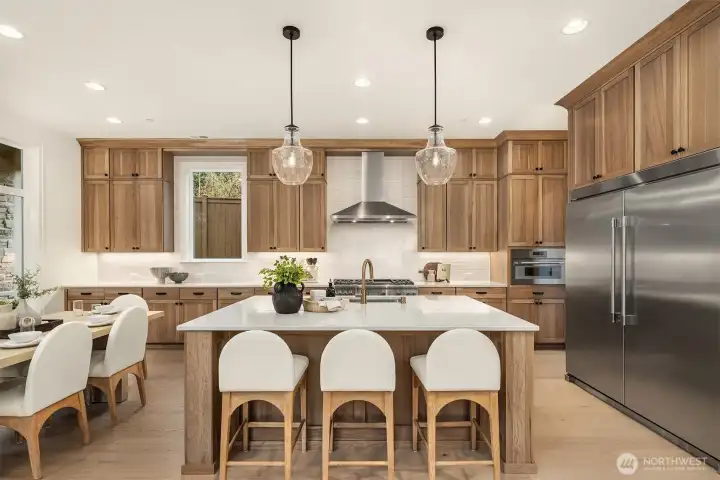Brand new construction by Murray Franklyn! The stunning Cadmium plan features a double-door entry, private den, and formal dining with open-to-above ceilings, wine cooler, and buffet. Down the hall, the grand dining room flows into a family room with soaring ceilings. The home offers five bedrooms and 4.5 bathrooms, including a main-floor guest suite with a covered patio. The gourmet kitchen features a Thermador range and cooktop, large island, cozy nook, second dishwasher, and a spacious working pantry with ample storage. Upstairs, four bedrooms include a luxurious primary suite with a generous walk-in closet, two bathrooms, and a large laundry room. Outdoor living is effortless with a covered patio featuring a fireplace and front porch for relaxing. A three-car garage with EV charging provides abundant storage and convenience. Additional features include perimeter fencing, two heat pumps, and a beautifully landscaped backyard. Located in the desirable Forbes Creek neighborhood, minutes from Juanita Beach and scenic trails to Kirkland.