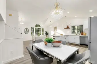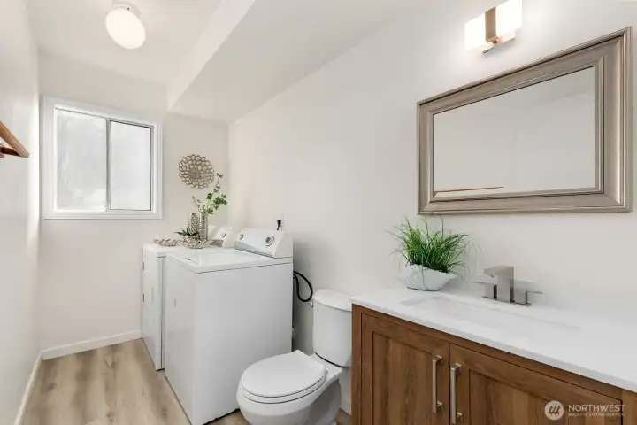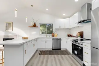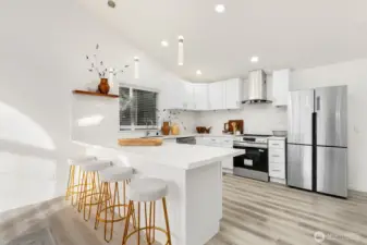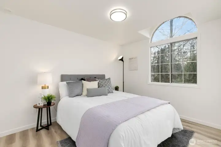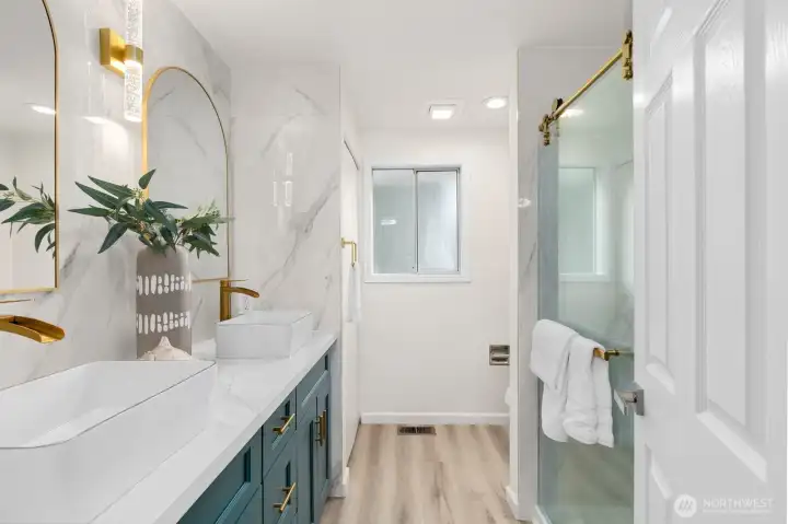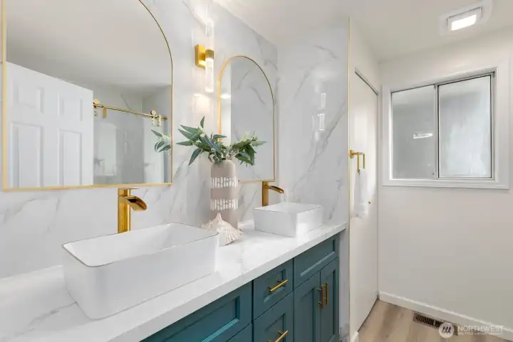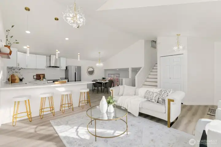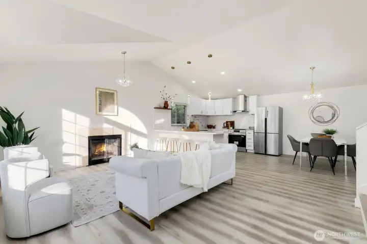 Beautifully updated tri-level home in the highly sought-after Newport Hills neighborhood. Thoughtfully refreshed throughout with a modern kitchen featuring sleek cabinetry,stainless steel appliances & a spacious island, along w/ updated bathrooms, new flooring, fresh interior & exterior paint.Vaulted ceilings and expansive windows fill the open main living spaces with abundant natural light, highlighted by a cozy fireplace. The flexible lower-level family room is ideal as a media room, recreation space, or home office, with direct access to the private backyard. Enjoy a peaceful, tree-lined retreat with a spacious patio and tiered landscaping, plus approved permits in place for selective tree removal to further enhance sunlight and outdoor use. Excellent location within walking distance to shopping, dining, parks & everyday amenities w/ easy access to I-405 & I-90. Served by top-rated Bellevue schools — Newport High.