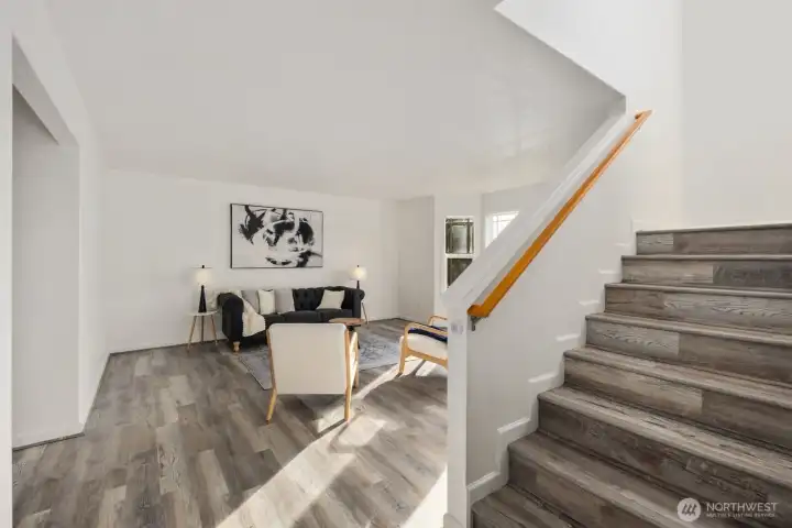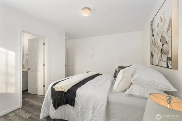 MOVE-IN READY townhome offering 2,200 sq ft of spacious living with a rare and flexible layout featuring three private suites, each with its own ensuite bath. The home offers both separate living and family rooms, a full deck off the dining area, and a large two-car garage with alley access. Thoughtfully refreshed with new LVP flooring throughout, brand-new kitchen appliances, fresh interior paint, water heater and furnace. HOA includes sprinkler and yard maintenance, for low-maintenance living. Centrally located with convenient access to I-5 and Joint Base Lewis-McChord.