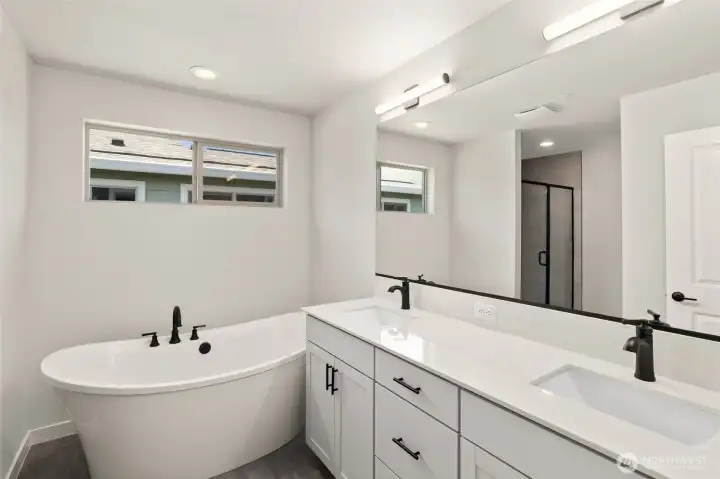 Highly sought-after Junco floor plan at Conner Homes at Uplands in Puyallup. The grand 12-foot ceilings in the great room create an inviting atmosphere, perfect for entertaining. Enjoy an open-concept layout that seamlessly connects the kitchen, dining, and living areas. Bed and 3/4 bath on the main level are ideal for guests. The luxurious primary suite features a freestanding soaking tub and walk-in shower. Set in a desirable and serene location, with access to a variety of shopping and activities. The newly completed clubhouse at Uplands gives homeowners access to a fitness center, swimming pools/hot tub and more. Welcome home!