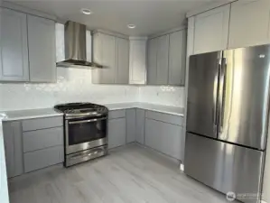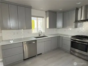 Beautifully remodeled home on the Greenbelt lot. Extensive upgrade throughout, featuring a modern kitchen w/quartz countertop and SS appliances, Great room concept w/vaulted ceilings & absolutely no wasted space! Engineered Hardwood floors upstairs, laminate downstairs and Heated tile floors in the bathrooms. Vaulted Primary suite w/generous walk-in closet & bath plus two very large guest bedrooms! Completely finished garage, could be used as playroom/gym. Cat 5 wiring! lifetime vinyl siding & shake details set it off!