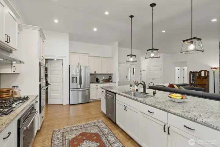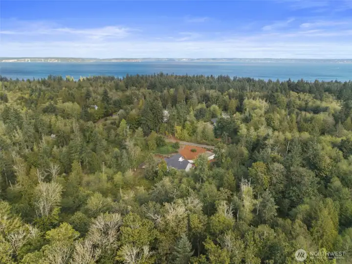 Built in 2021, this rare modern home offers peaceful country living on 5 private acres, while remaining close to everyday conveniences. The interior is completely single level with no steps inside - just two steps at entry - featuring wide halls, an open floor plan, and warm honey-oak flooring throughout. The expansive living area is anchored by a striking rock-faced gas fireplace, creating a welcoming and cozy atmosphere. The modern kitchen is finished in neutral tones and designed for both daily living and entertaining. A spacious primary suite provides a quiet retreat. Despite the tranquil setting, the home is fully equipped for modern life and remote work with gigabit fiber internet, Starlink backup, a whole-house automatic standby generator, and a premium water filtration system. Additional features include a two-car garage, extra parking, and space for future RV parking, plus 1,800+ SF of full height storage space complete this home. Enjoy fruit trees, berries, and heritage redwoods, all just minutes from the Kingston ferry, Safeway, beaches, trails, and easy access to Edmonds and Seattle.