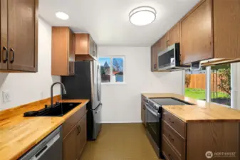 Welcome to this thoughtfully updated home offering comfort, function, and modern efficiency. The residence features four bedrooms, one and a half bathrooms, and approximately 1,200 square feet of living space enhanced by numerous recent upgrades. A heat pump and Mitsubishi mini-split provide year-round heating and cooling, complemented by an enclosed wood stove with blower for added warmth and ambiance. The refreshed kitchen shines with updated cabinetry, butcher block countertops, tile backsplash, new sink and faucet, and brand-new GE and Bosch appliances. Interior improvements continue with fresh paint, updated lighting, added outlets, dimmer switches in bedrooms, and a hardwired media setup for a wall-mounted television and surround sound. The bathroom has been remodeled with a jetted soaking tub, tiled shower with built-in shelf, barn-style glass doors, new flooring, and upgraded ventilation. Exterior features include improved curb appeal, a leveled and usable fantastic yard, full rain gutters, motion-sensor lighting, and an impressive all-cedar fenced yard with solar accents and locking gates. Additional highlights include a new attic ladder, upgraded dryer venting, security camera, and hot tub power supply. Conveniently located and move-in ready, this home offers a well-rounded blend of updates and everyday livability.