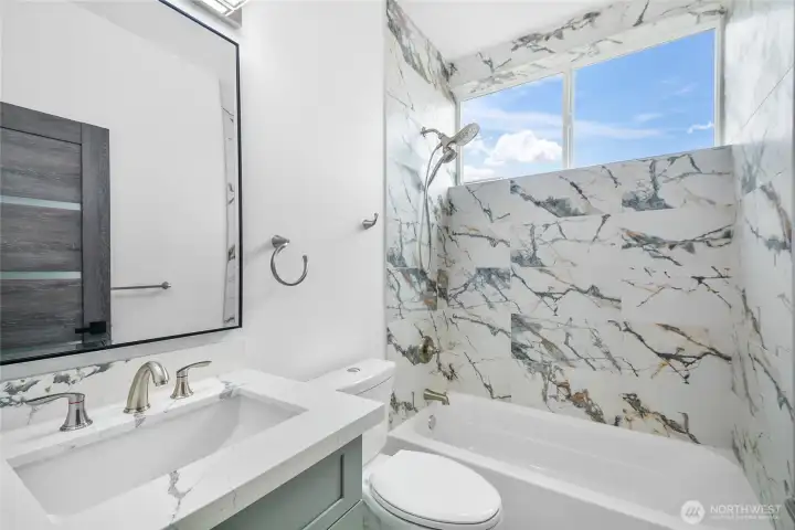 Brand-new modern home in Beacon Hill featuring 3 bedrooms and 3.5 baths. Enjoy luxury living with an open-concept layout, high-end finishes, and vaulted ceilings. Relax or entertain on the heated rooftop deck with mountain views and a gas BBQ hookup. The primary suite offers a walk-in closet and spa-like bath. Includes energy-efficient systems, a tankless water heater, mini-split A/C, and an attached one-car garage, EV charger. Gas tankless water heater, stove, fireplace. AC & heat pump and a recirculation water line. Conveniently located near light rail, trails, dining, and shopping.