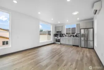 Modern new construction townhome in Beacon Hill featuring 3 bedrooms and 2.5 baths. Enjoy open-concept living with vaulted ceilings, stainless steel appliances, and elegant finishes throughout. The spacious primary suite offers a walk-in closet and full bath. Energy-efficient mini-split A/C ensures year-round comfort, heat pump and a recirculation water line. Take in beautiful mountain views and enjoy the convenience of being just minutes from light rail, parks, dining, and shopping. Perfect blend of luxury, style, and location!
