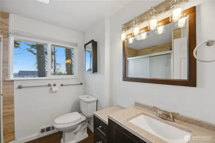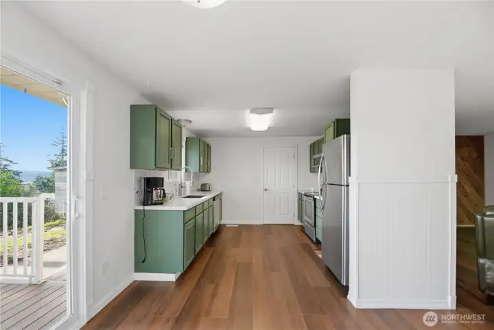 Light and bright updated 3 bedroom, 1 bath mid-century rambler on large lot in the heart of Oak Harbor. Living room with cozy fireplace and bay window, open to dining with slider to private backyard and kitchen with newly painted cabinetry, stainless appliances and quartz countertops. A Butler's Pantry is convenient to the kitchen with plenty of storage, full-sized washer/dryer and access to the converted garage for storage or workshop. Private partially fenced backyard with entertainment sized deck and large free-standing shop/hobby barn with power. RV/Boat and plenty of off-street parking. Easy access to base, schools, shops, restaurants, parks, and recreation. Quiet neighborhood out of the flight path!