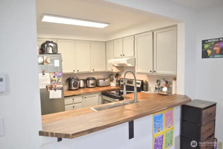 Beautifully updated, versatile townhouse with main-level entry and spacious living and dining areas featuring a cozy fireplace and private balcony. The upper level offers two bedrooms with a shared full bath plus a large primary suite with en suite and abundant storage, including an extra-large walk-in closet. The lower level provides exceptional flexibility as a grand primary, MIL, or potential rental space, complete with a tiled en suite bath, kitchen cabinetry with sink, ample storage, and a private patio/garden with separate entrance. Extensively updated in 2025: popcorn ceilings removed; new LVP flooring in living/dining; new tile in entry and kitchen; new butcher block countertops and backsplash; fresh interior paint throughout; new light fixtures and switches; new thermostats; new faux wood blinds in bedrooms (blackout); and a brand-new wood deck. Walk Score 87—close to Burien, Seattle, Sea-Tac Airport, I-5, SR-509 & SR-518. NO RENTAL CAP. Sold fully furnished—a turnkey opportunity as sellers are relocating out of the country.