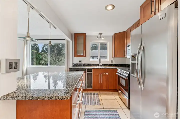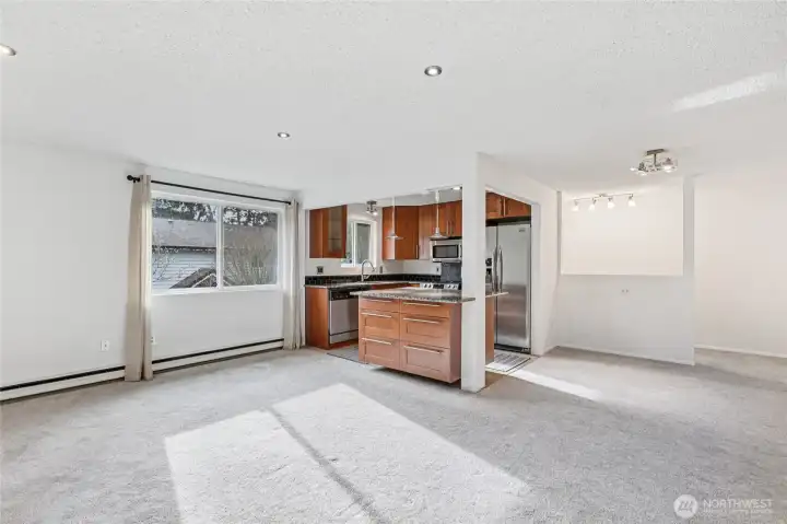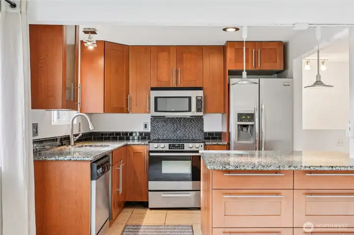 Enjoy a spacious, updated top-floor condo in a private, peaceful setting overlooking the beautifully maintained community courtyard. The remodeled kitchen features granite countertops, tile flooring, stylish cabinetry, and stainless-steel appliances, opening seamlessly to a bright living room with tons of natural light. The large primary bedroom offers dual closets, while double-pane windows enhance comfort and efficiency. Additional highlights include a newer roof and plumbing, fresh paint throughout, a full bath plus a convenient half bath with in-unit laundry. All appliances included. Ideally located near bus lines, light rail, freeways, hospitals, schools, restaurants, shopping, and vibrant downtown Edmonds. HOA covers water, sewer, garbage, and landscaping. No rental cap! FHA/VA Approved Community!