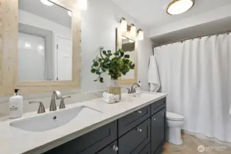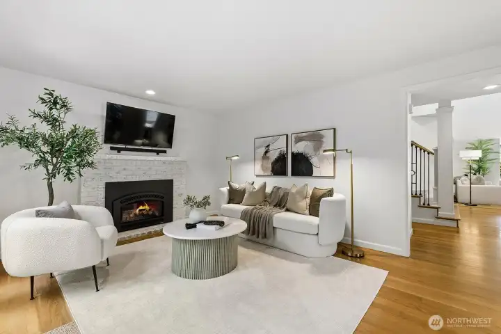 Beautifully updated, this townhome lives like a single-family home and is set against a serene greenbelt with yard space, mature trees, and lush landscaping that provide exceptional privacy. Hardwood floors and abundant natural light create a warm, inviting atmosphere, while soaring ceilings in the living room add an airy sense of openness, perfectly complemented by a cozy gas fireplace. This spacious 4 bedroom, 2.5 bath home offers 2,667 square feet of well-designed living space, providing flexibility for everyday living, guests, or a home office - while maintaining comfort, privacy, and functionality throughout. The thoughtfully designed layout features a kitchen with an eating nook and stainless steel appliances, opening seamlessly to a comfortable family room with direct access to a large deck and backyard - ideal for entertaining or unwinding during quiet evenings outdoors. The spacious primary suite includes a large walk-in closet, an updated bathroom with soaking tub and a private deck. Two-car garage, and ample storage throughout. A well-managed HOA enhances the lifestyle with a clubhouse and swimming pool, all within a close-knit, friendly community. Neighborhood parks, trails and tennis courts. Ideally located with easy access to I-90 and I-405, major employment centers, everyday amenities, and the airport. This home offers the perfect blend of comfort, convenience, and tranquility.