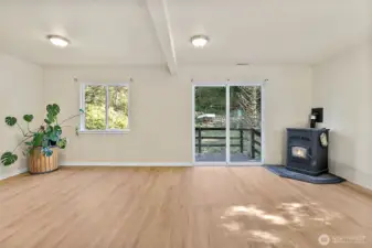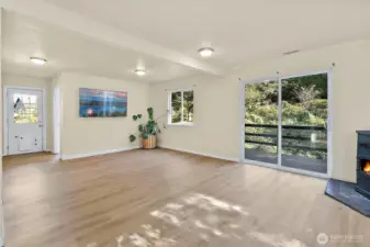 Charming 3-bedroom, 2-bath home nestled on nearly one acre in the peaceful community of Ravensdale. Surrounded by nature, this inviting property offers a serene Pacific Northwest lifestyle with the convenience of nearby amenities. Inside, enjoy a light-filled interior featuring new flooring, fresh neutral paint, and a cozy stove that creates a warm and welcoming atmosphere. The open living area is enhanced by large windows and a sliding glass door that leads to a spacious deck—perfect for entertaining, morning coffee, or unwinding while taking in tranquil forest views. Upstairs, the home offers flexible living spaces with charming sloped ceilings, ideal for bedrooms, a home office, guest space, or a creative studio. Each room provides versatility to suit your lifestyle needs. Outside, the expansive yard is framed by mature trees, offering privacy and plenty of room for gardening, play, outdoor gatherings, or simply enjoying the peaceful surroundings. Located just minutes from Maple Valley, Covington, and Black Diamond, this home offers the best of quiet country living with easy access to shopping, dining, schools, and recreation. A unique opportunity to own a private retreat in a beautiful, natural setting—perfect for those seeking space, comfort, and connection to the outdoors.