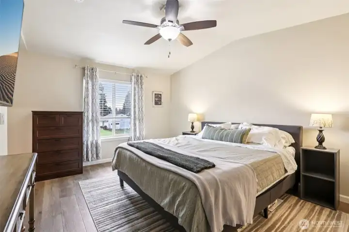 Spacious, versatile, & perfectly located! This 5-bdrm, 4-bath home offers room for everyone, plus parking for up to 6 vehicles. Tucked away on one of the largest lots in the neighborhood, enjoy peaceful walks through scenic greenspace & the nearby community park right on your way home. The lower level features a private bdrm & full bath—ideal for guests or dual living. Main floor offers 1 bdrm, 1 bath, & Great room living w/ an abundance of light & spacious kitchen. Upstairs you will find a large prim ste w/ WI closet & private bath. 2 additional bdrms w/ ample storage round out this perfect home. Enjoy year-round outdoor living on the lower patio or the main level covered decks, plus extra storage in the tool shed. The terraced yard offers privacy & great gardening space. Conveniently located close to amenities, shopping, dining, & parks—this home truly has it all!