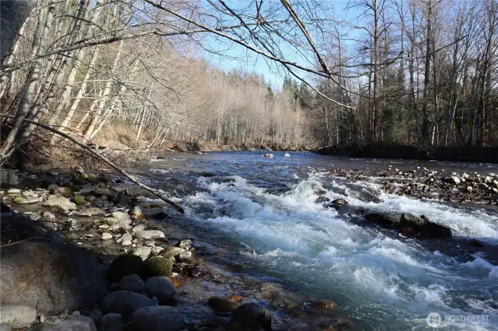 Beautiful acreage at a convenient, close in location. Minutes to schools, shopping, services and access to freeways. Approximately 300 feet on the Cedar River for picnicking, swimming, fly fishing, kayaking, etc. Water main and electricity on the lot. Two possible building pads - one near the entrance and the other up on top. Located in the secluded Orchard Grove neighborhood on a low traffic no outlet street. Go ahead and walk the property but have a map with you, has irregular lot lines. Does not have an official address, 23910 SE 238th St. would be approximate. Pin in listing map is properly placed. Map available on request. Park by sign.