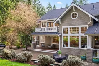 Evoking the timeless poise of a Hamptons escape, this 5000 sf Fox Island sanctuary offers a lifestyle of quiet confidence. Set inside the gates of Pebble Beach Estates on 1.4 exceptional acres, the residence - offered in mint condition with a brand new roof - balances high-design with inviting, "stay awhile" comfort. For the auto enthusiast, the detached 1800 sf showroom is its own masterpiece. This climate controlled collector's cathedral includes all cabinetry and professional lifts to showcase 9-10 dream cars. (+ 3 more in the attached garage). Inside the home rich hardwoods anchor the soaring greatroom bathed with natural light while fireplaces throughout provide rhythmic warmth. The kitchen aptly appointed with Sub Zero & Viking appliances meets a deep farmhouse sink for artisanal charm. Host a formal dinner beneath the crystal-lit coffered ceiling then retreat to the intimate wood clad den or the wrap around veranda. The outdoor experience takes PNW leisure to new heights. A huge cobblestone patio defined by its gently splashing fountain & a lighted pickleball/sport court is the perfect back yard BBQ party platform. After twilight relax around the stone fire pit or the hot tub gazebo framed by peaceful towering evergreens. 4 bedrooms, 5 baths, (gorgeous primary suite w fireplace, vaulted ceilings, & deck) family/billiards room, den/office, fully finished heated storage galore, AND private community beach - THIS is the definition of comfortable luxury!