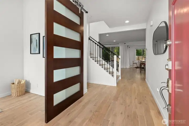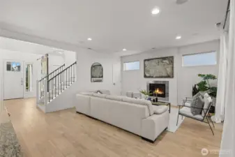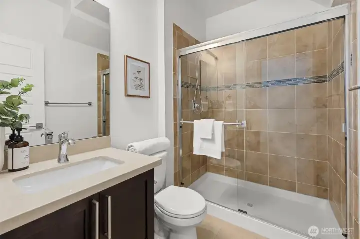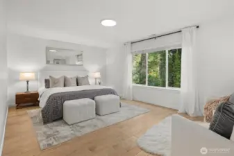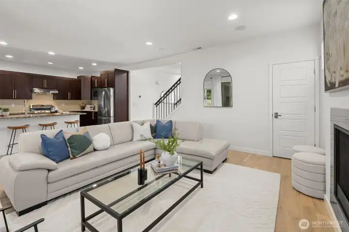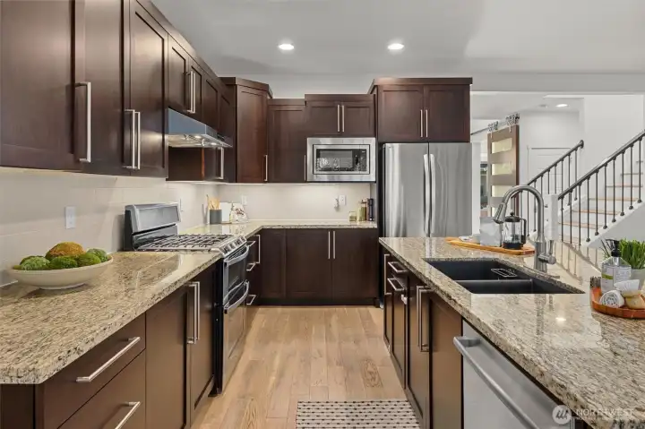 Set against a tranquil nature preserve, this beautiful modern Craftsman offers a rare blend of privacy, elegance, and contemporary design. The light-filled open floor plan with hardwood floors flows effortlessly into a chef-inspired kitchen with granite slab countertops, oversized island, and inviting dining and living spaces—ideal for entertaining. Double corner sliding doors open to a covered outdoor deck with a cozy gas fireplace, creating a seamless indoor-outdoor lifestyle year round. The main level includes a guest bedroom or office with a ¾ bath, while upstairs offers a sun-drenched loft providing versatile flex space, two additional bedrooms, a full bath, laundry room, and a serene primary suite with forest views, dual walk-in closets, and a spa-like bath. The fully fenced, professionally landscaped yard is perfect for relaxing, gardening, or BBQs, and the two-car garage includes extra storage and an EV charger. Ideally located minutes to Costco, Mill Creek Town Center, I-5, Lynnwood Light Rail, and Everett Park & Ride—this home delivers exceptional comfort, style, and convenience.