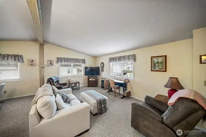 Welcome to Thunderbird Village, a resident-owned 55+ community in Tumwater. This well-maintained 1991 home offers 1,110+/- sqft with 2-bedrooms and 2-bathrooms. New flooring runs through the living room, dining area, kitchen, and family room. Additional features include a dedicated laundry room with washer and dryer included. A spacious 2-car garage and enjoy the low-maintenance backyard. Thunderbird Village offers gated entrances, RV parking, locked mailboxes, trails, and a clubhouse for games, potlucks, meetings, and private gatherings. Space rent includes water, sewer, and cable.