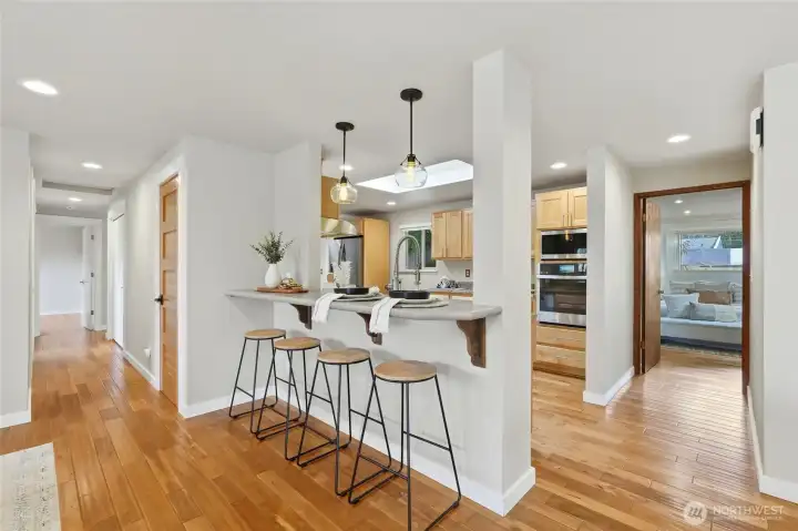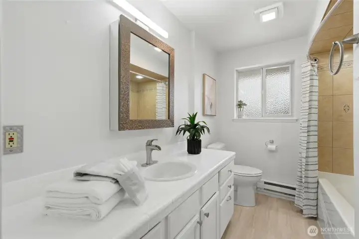 Welcome to easy, single-story living in this charming brick home in Lynnwood near Edmonds College. Discover an ideal blend of comfort, style, and convenience with 3 spacious bedrooms and 1.75 baths. The engineered hardwood flooring adds warmth and elegance, while ductless heating and cooling ensure year-round comfort. Enjoy added attic insulation for greater efficiency and a fully remodeled kitchen that’s perfect for everyday meals and entertaining guests. Outside, you'll enjoy a landscaped yard featuring mature trees, vibrant plants, and flowers with large containers ready for your own flower or vegetable garden. Important updates, like the roof and gutters replaced in June 2025, provide peace of mind and add real value to the home. Located just 3 miles from the light rail and you’ll love being just about 15 minutes from either Seattle or Everett, making commuting and exploring the area effortless. Come see this move-in-ready home in person and imagine how seamlessly your next chapter could fit here.