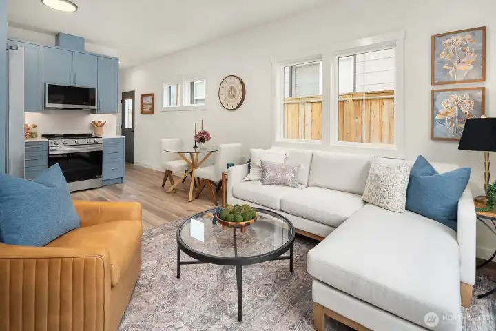 Full of charm and style, this sweet two bedroom, two bathroom home with a main floor living checks all of the boxes. Off of the cozy great room, the kitchen boasts excellent storage and beautiful custom cabinetry. Enjoy a kitchen, dining and great room that looks out onto a patio and fenced yard. Head up one level to a private guest bedroom and bath retreat, along with laundry. On the top floor escape into your primary suite, complete with western exposures. Relax on the large rooftop deck and take in the fantastic views! Off-street parking off alley included! Ideally located in Northeast Seattle's Bryant neighborhood, enjoy close access to University Village, Seattle Children's Hospital, University of Washington, and the Burke Gilman Trail.