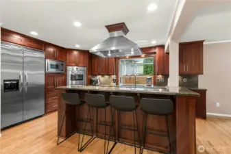 Space, function, and quality finishes come together in this standout 5 Bed + Office + Media Room / 2.5 Bath / 3,619 sq ft Bothell home on a quiet cul-de-sac corner lot. Soaring ceilings and rich hardwood floors span the main level, setting a tone that carries through every room. For buyers who need true main-floor living, this one delivers: a private primary suite with upgraded bath and radiant heat flooring, plus a dedicated office — both on the main level. The chef's kitchen is outfitted with Viking appliances, double ovens, and granite countertops, with an eating bar that invites casual conversation while you cook. Five true bedrooms plus a large bonus room with projector, space for a pool table, and built-in bar mean there's genuine space for every need — remote work, guests, a home gym, or all of the above. Step outside to a fully fenced, private backyard anchored by a built-in masonry fireplace, with direct adjacency to HOA green space. The practical list is equally strong: whole-home backup generator, central A/C, newer 40-year roof, updated furnace and water heater, and an oversized 3-car garage. Pre-inspected and move-in ready. Minutes from shops, restaurants, and I-405 — served by the Northshore School District.