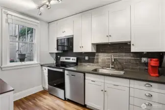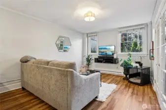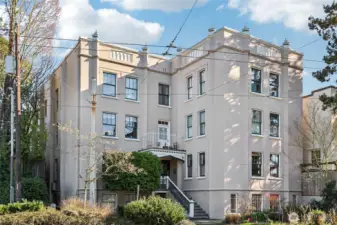 Own a piece of Seattle history at The Fairfax, a distinguished Gothic Revival landmark designed in 1923 by prolific architect James E. Blackwell. This expansive, light-filled residence captures the building’s architectural texture, wrapping multiple corners with windows to the East & West, including a peaceful view across a cozy atrium. High ceilings, original French doors, & oversized rooms meet a fresh, upscale remodel with LVP flooring & plush new carpeting. Enjoy the rare benefit of no shared walls & a semi-private entry that heightens the quiet, residential feel. Modern comforts include a generous walk-in closet in the primary bedroom, a reimagined open kitchen, additional building storage, bike storage, & laundry just across the hall. The Fairfax is meticulously maintained and self-managed, offering low monthly dues and a strong financial record with no special assessments in over 15 years. Plentiful nearby street parking adds everyday ease. Less than a block from the back entrance of Volunteer Park for concerts, picnics, the Conservatory, & near the Blaine/Harvard stairs with sweeping views of Lake Union & the Space Needle. Close to Capitol Hill’s dining & nightlife, or catch the #49 bus across the street with easy access to Downtown, the U-District, and SR-520. An exceptional home, ready for your enjoyment.