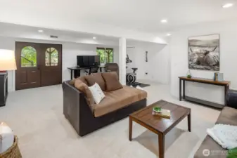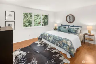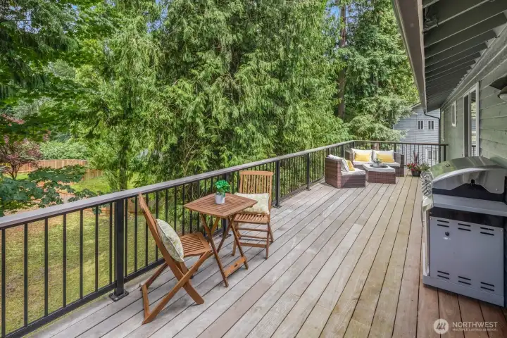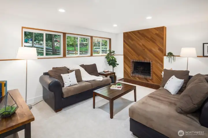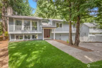 Tucked beneath towering evergreens on an oversized lot, this beautifully updated Kirkland Highlands home delivers the rare combination of privacy, space, and unbeatable city convenience. Vaulted ceilings and an open-concept layout create a light-filled main living area with a cozy wood-burning fireplace, a remodeled kitchen and spacious dining space, perfect for everyday living and entertaining. Three bedrooms are thoughtfully arranged on one level, including a generous primary suite and an additional full bathroom. The lower level expands your living options with a large great room, a ¾ bath, and a flexible space ideal for a fourth bedroom or home office. French doors, from the upper and lower levels, lead to a rebuilt Ipe deck overlooking a serene, park-like yard, your own private escape. Recent upgrades include a heat pump, tankless water heater, triple-pane windows, fresh interior paint and new carpet; this home is truly move-in ready. The oversized 2-car garage has tons of space to store your holiday decorations, recreational gear or even your personal wood shop. All of this, just minutes from Google, parks, trails, downtown Kirkland and top-rated Lake Washington schools, including Peter Kirk Elementary. Come check it out!