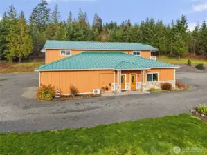 Custom-built two-story shop/home on 20.98+/- acres of designated forest land near Chehalis, WA, offering privacy, versatility, and breathtaking views of Mount Rainier, Mount St. Helens, and Mount Adams. Originally designed for easy-living, yet ideal for entertaining and everyday living, this unique property blends comfort with exceptional functionality while remaining conveniently close to I-5, lakes, and river recreation. The home features 1,700+/- sq ft of nicely finished living space with custom knotty alder trim, granite countertops, stainless steel appliances, walk-in pantry, walk-in closets, and a finished lower-level flex space. A balcony off the kitchen, built-in vacuum system, and heat pumps on both floors provide comfort and efficiency year-round. Cement bat & board siding with stone front entry. Gated entry adds privacy. Outdoor living is a standout with thoughtfully designed landscaping, over 500 colorful plants and fruit trees, raised garden beds, greenhouse, and full sprinkler system. Enjoy entertaining on the large, stone pavers constructed patio complete with fire pit, outdoor kitchen, and spa/hot tub. The property includes an impressive 3,150+/- sq ft of shop and storage space with 14-foot drive-through doors ideal for RV storage, a separate garage, rear lean-to, and ample guest parking. Future expansion is made easy with a 5-bedroom septic system, private well, and two 200-amp electrical service panels. RV power & dump on site.