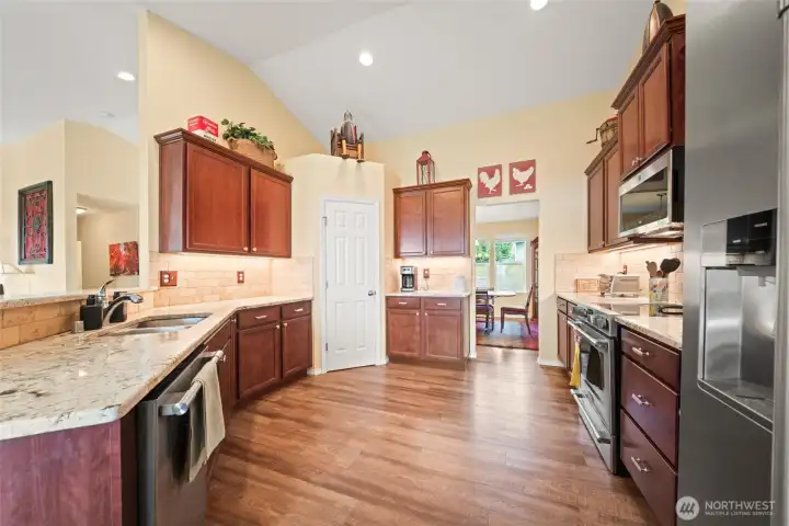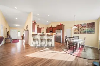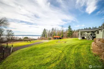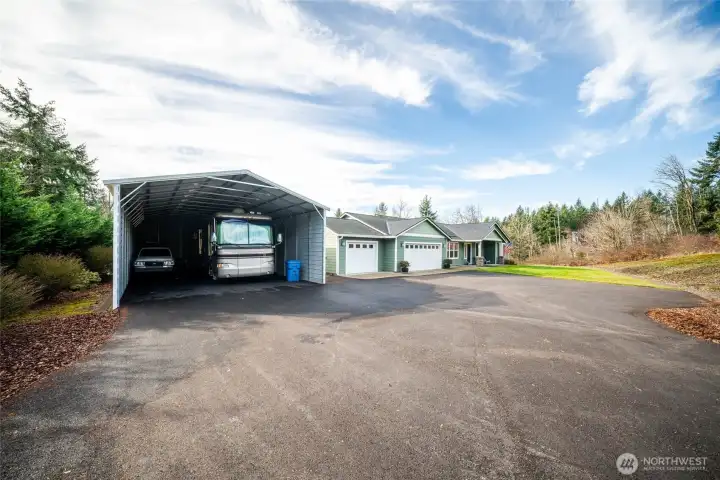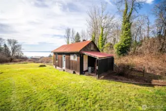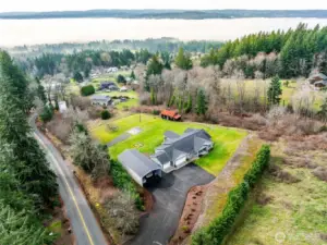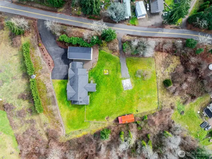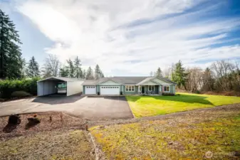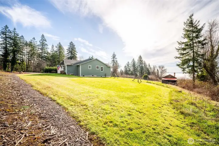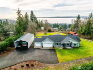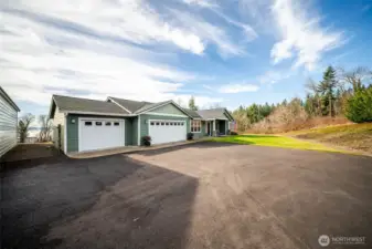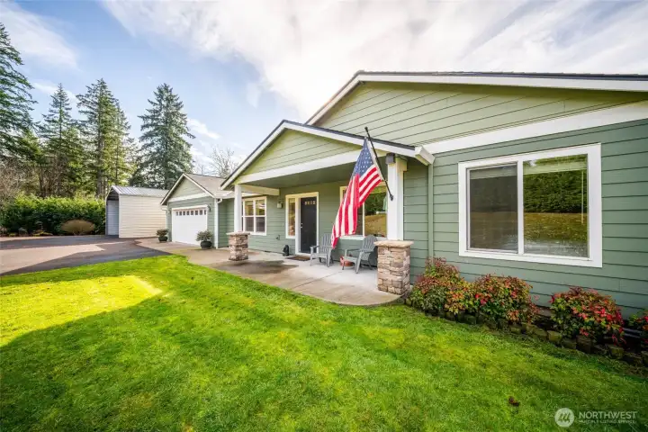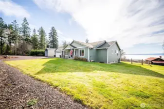 Discover this beautifully maintained single-story home on ~2.67 acres overlooking the Columbia River in the lovely community of Kalama! Step inside to find high ceilings, a spacious dining room and kitchen with granite countertops, stainless appliances, and a corner pantry—perfect for entertaining or comfortable everyday living. Pride of ownership shines throughout with thoughtful finishes, manicured landscaping, and a warm, inviting feel. The home offers a finished 3-car garage with built-in cabinets and custom workshop space, plus an impressive 25x50 detached metal shop with pavement under providing ample space for your boat, tractor, RV, or toys! Outside you'll enjoy loads of paved parking, a stone-accented covered porch entry, a fenced yard, and a covered back deck ideal for relaxing while taking in the view. The property also includes a charming old homestead structure—currently used for storage—with a rustic sauna inside, and three driveway approaches for convenient access. With city water and septic, PLUS a private well for irrigation, this home blends comfort and practicality. A 50-year roof adds peace of mind, and the location offers the perfect balance of privacy and convenience—just minutes from town and freeway access. A rare find combining space, views, and a one-level layout that you don't want to miss!