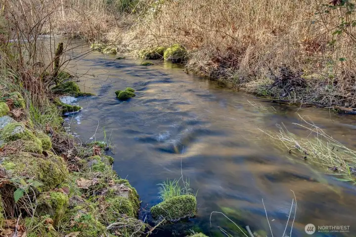 Thoughtfully designed to embrace the outdoors, this serene custom home is privately situated on a beautiful landscaped ¾-acre lot alongside picturesque May Creek. This unique property offers a peaceful retreat where indoor comfort seamlessly blends with the sights and sounds of nature. Designed to maximize both nature views & everyday comfort, features rich hardwood floors, soaring vaulted ceilings, exposed beams & a wall of windows that floods the open-concept layout w/abundant natural light. Spend evenings around the fire pit or unwind beneath the large covered deck. The chef’s kitchen boasts slab granite countertops, luxury stainless steel appliances, & a gas cooktop with matching oven—perfectly designed for both everyday living and effortless entertaining. The primary suite is a peaceful retreat, featuring dual private balconies, separate walk-in closets, and a spa-inspired bath designed for relaxation and rejuvenation. A functional mudroom, advanced HVAC with electric filter system, and a built-in sprinkler system add everyday convenience. A detached 25' x 35' shop with dedicated office space, plus an additional storage shed, enhances the property’s flexibility—ideal for hobbies, workspace, or extra storage needs. Located at the outskirts of Newcastle, within the highly regarded Issaquah School District and just minutes from shopping and dining at Factoria Mall as well as the vibrant amenities of Bellevue, this home offers the perfect balance of privacy and convenience.